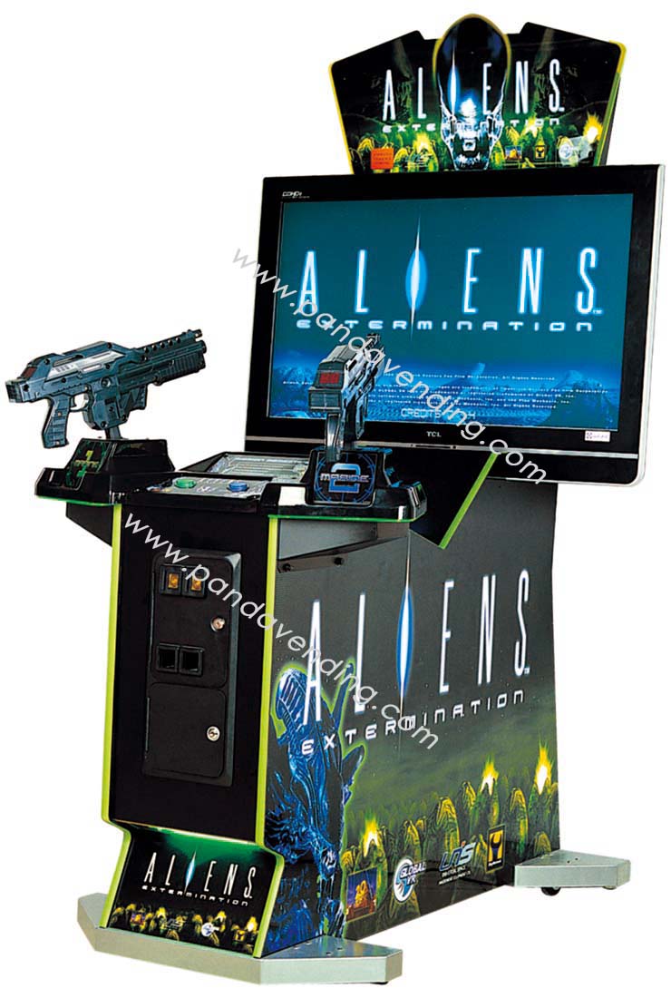 Gun Shooting Game Model: GM-G05 Name: Aliens Specification: Monitor: 32"LCD or 42"LCD Dimension: W95*D133*L200 cm (42"LCD) Weight: 220Kg (42"LCD) Game Classification: Harddisk Game Power Consumption: 400W